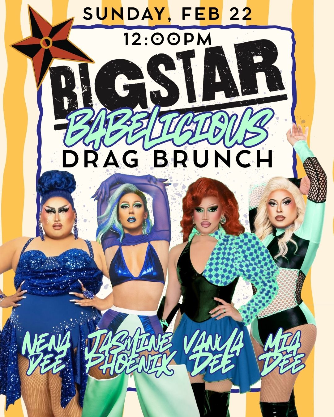 Catch the rotating cast of brunch babes Vanya Dee, Mia Dee, Nena Dee, Dulce Divine, Hunter Diamond, and Miss Jasmine Phoenix! With this cast, there'll never be a dull moment!